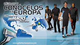 La promoción “Rétalos y conócelos En Europa con Gillette Mach3 Turbo”, consiste en que por la compra de cualquier producto Gillette Mach3 o Gillette Series, cuatro personas tendrán la oportunidad de ganar un viaje 5 estrellas de 10 días por Europa, para conocer a Roger Federer y Thierry Henry, además de asistir a partidos de Tenis, Golf y Fútbol profesional en las mas afamadas plazas deportivas.
