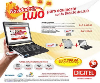 Para esta temporada Digitel ofrece a sus clientes de los segmentos prepago y postpago natural y PYME una Netbook Lenovo S10 acompañada del dispositivo de Banda Ancha Móvil 3G (BAM) y un Bolso para el equipo