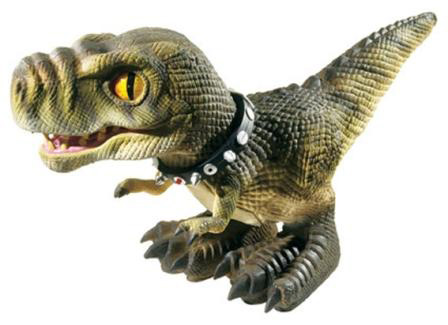 – D-Rex es el dinosaurio más tecnológico de todos. Se mueve solo y sigue la voz del niño, tiene sensores en la cabeza que al hacerle cariño responde. Se «hace» el dormido hasta que alguien prende la luz y simula comer la «comida» que el niño le de.