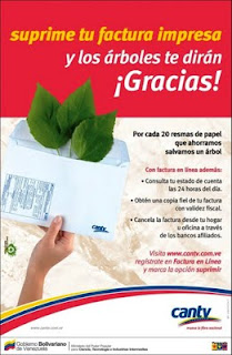 Cantv fomenta el uso racional del papel, con el impulso del servicio «Factura en Línea», iniciativa que forma parte de su responsabilidad socialista y compromiso ambiental.