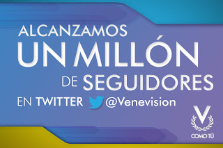 Venevisión superó 1 millón de seguidores en su cuenta principal en Twitter @Venevision. La información fue difundida por el propio canal de televisión venezolano a través de una nota de prensa.