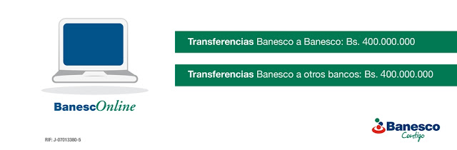 La institución financiera indicó que a través de BanescOnline los clientes naturales podrán hacer transferencias del mismo titular y a cuentas de terceros en Banesco por un monto de hasta Bs. 400.000.000 diarios. Para las transacciones de transferencias a otros bancos, el monto máximo también se elevó a Bs. 400.000.000 diarios.